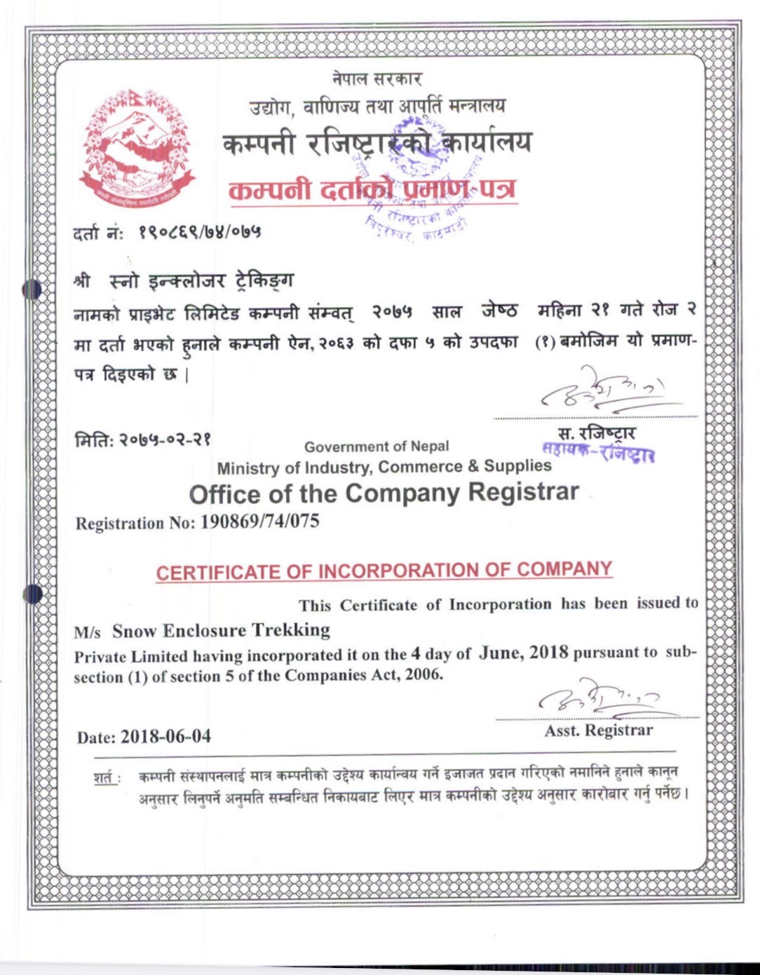 Certificates and Documents